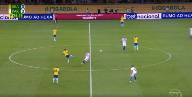 开场仅仅两分钟,巴西队就进球了。阿尔维斯掷出界外球,库尼亚禁区内护住皮球。巴拉圭后卫解围不远,断得皮球后,拉菲尼亚带球杀入禁区。摆脱两名对手围堵之后,拉菲尼亚左脚射远角,皮球进了。不过,裁判回看VAR,发现过人时拉菲尼亚手球,进球被判无效。